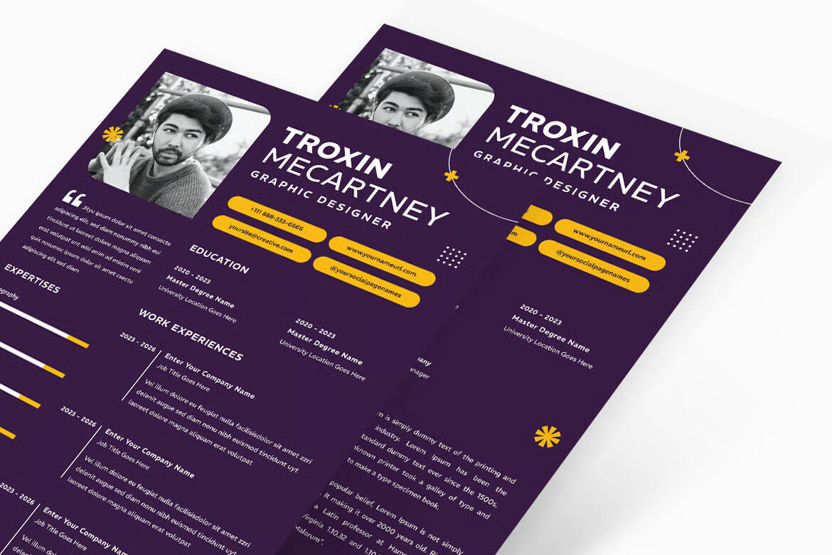 You can use this Pack to create modern resume for your Business/Individual or for your Clients! All Designs are suitable for any type of Corporate/Creative Business or even Personal use.